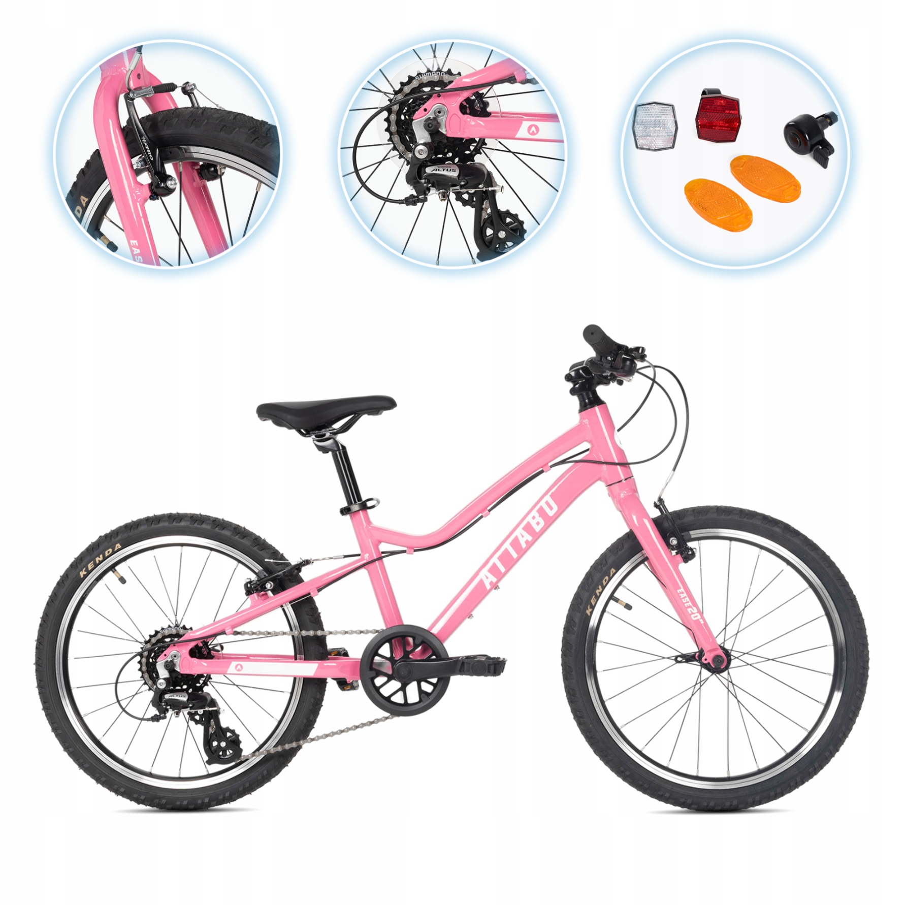 Rower dziecięcy ATTABO EASE 20″ różowy Super lekki Aluminiowy SHIMANO ALTUS